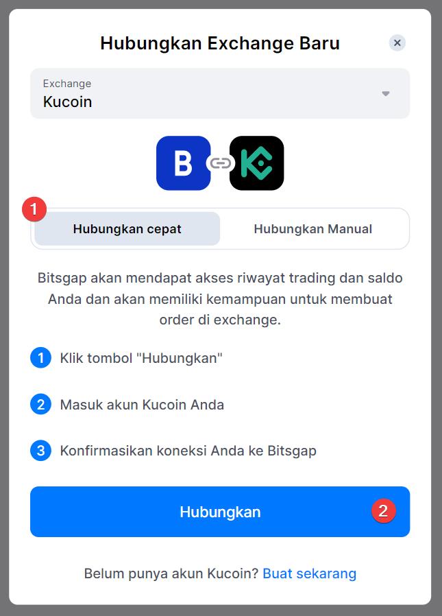 Pilih Kucoin dari daftar, klik Fast Connect, kemudian [Hubungkan].