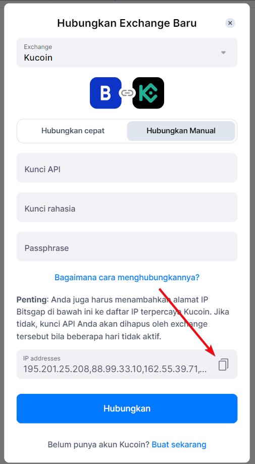 Menghubungkan kunci API Kucoin Secara Manual