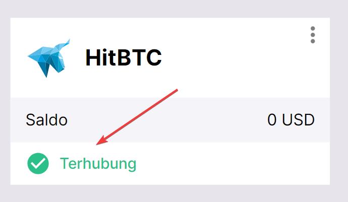 Bila semua langkah sudah benar, Anda akan melihat Hit BTC ditambahkan di daftar exchange dengan status Terhubung dan saldo trading tersedia di akun Anda.