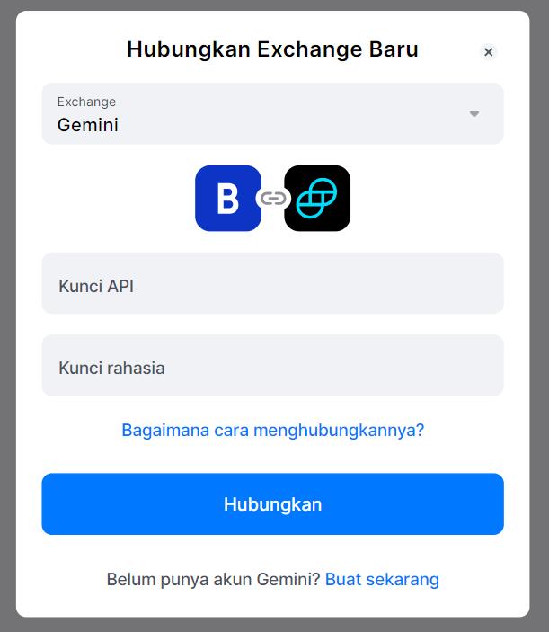 Bila semua langkah sudah benar, Anda akan melihat Gemini ditambahkan di daftar exchange dengan status Terhubung dan saldo trading tersedia di akun Anda.