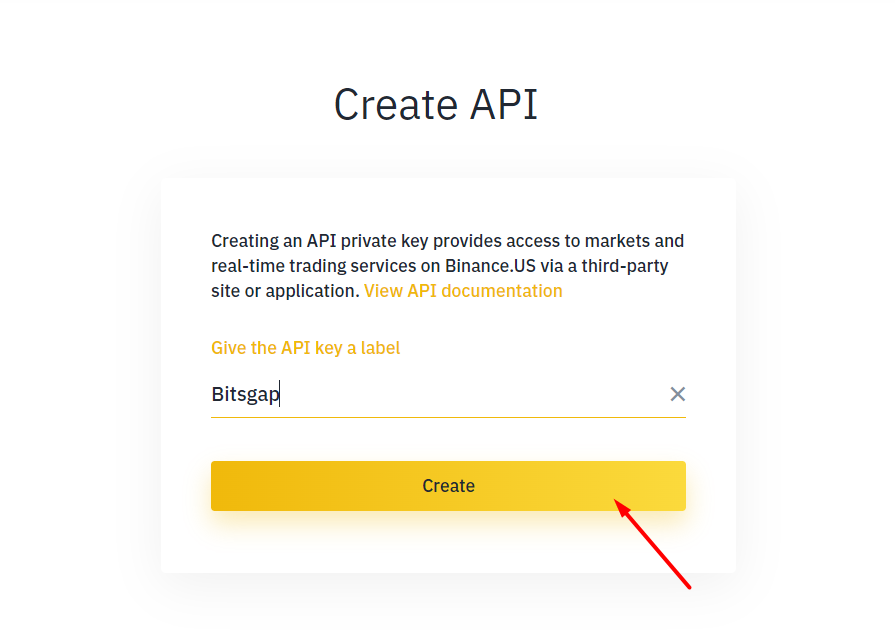 Beri kunci API nama (sesuai pilihan Anda) sehingg Anda mudah mengenali ketika kunci sudah terhubung dengan akun Bitsgap. Setelah itu, klik [Create].