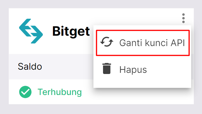 Buka halaman "Exchang Saya" dan temukan kunci API Bitget Anda. Klik tiga titik di pojok kanan atas, kemudian pilih [Ganti kunci API].