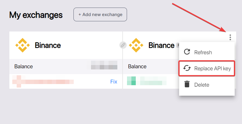 For Untuk exchange yang tidak mendukung Fast Replace, ikuti langkah-langkah berikut untuk memperbarui kunci API secara manual.