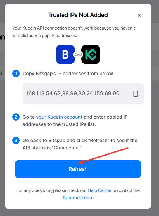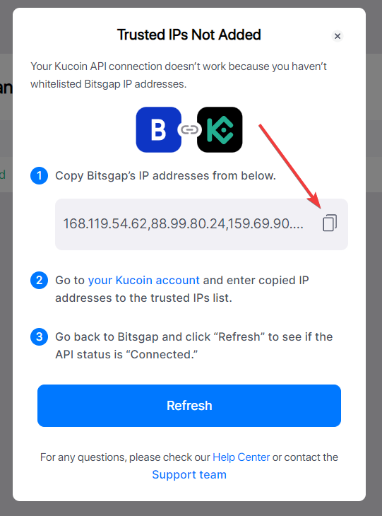 Salin alamat IP tepercaya Bitsgap