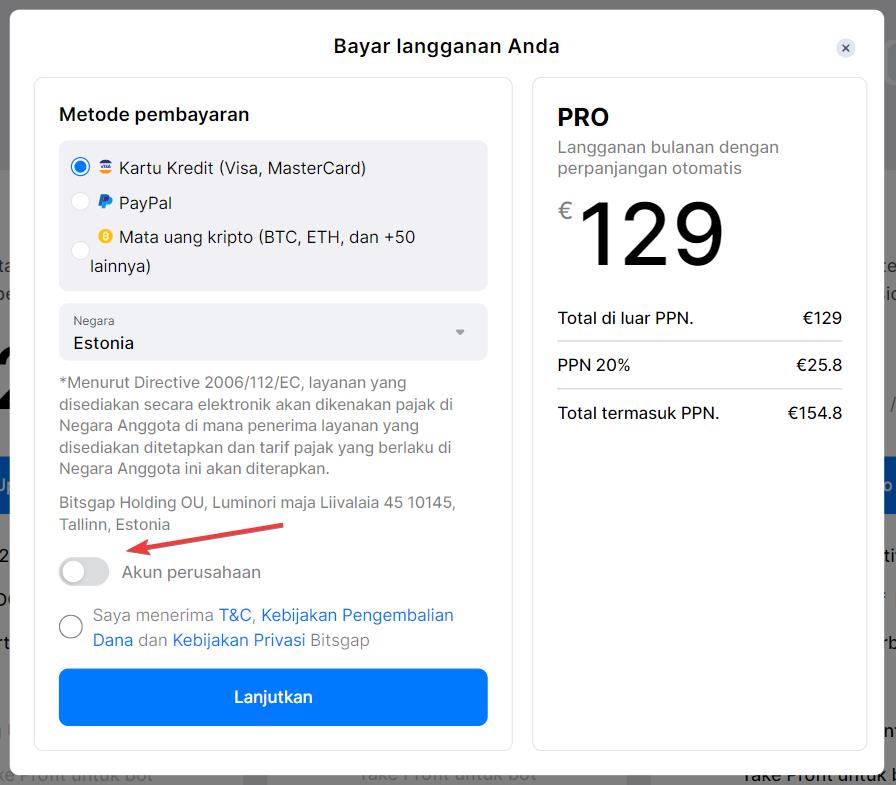 Cara Membeli Paket Bitsgap sebagai Pelanggan Korporat