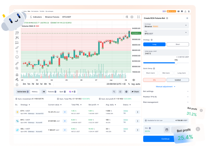 Sì, il trading futures può essere redditizio, soprattutto quando utilizzi strategie ben collaudate e l’automazione nelle operazioni. Con la leva finanziaria, i trader possono amplificare i guadagni, sebbene anche i rischi siano aumentati. Bot come COMBO e DCA Futures di Bitsgap sono progettati per aiutare a gestire questi rischi, ottimizzando al contempo i rendimenti nei mercati volatili.