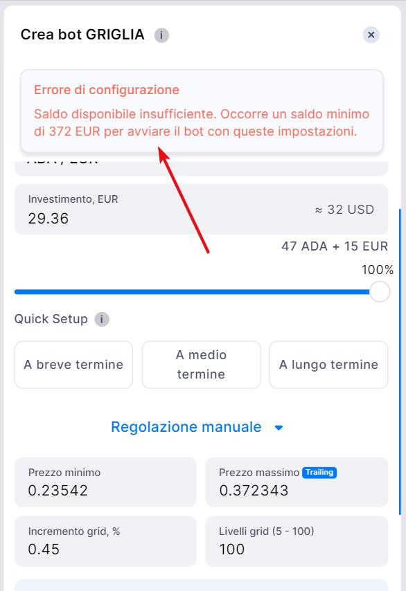 L'investimento minimo per avviare un bot