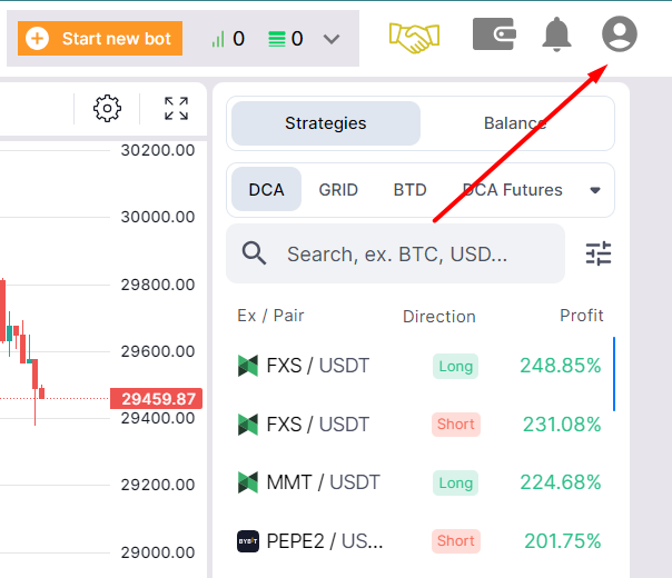 Accedi al tuo account Bitsgap utilizzando qualsiasi browser.