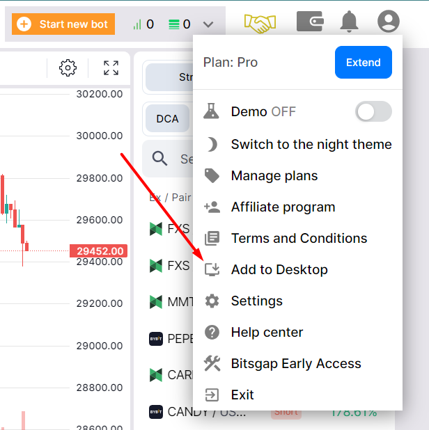 Aggiornare il Tuo Abbonamento: Sblocca funzionalità avanzate e porta la tua esperienza di trading al livello successivo aggiornando il tuo abbonamento a Bitsgap.
