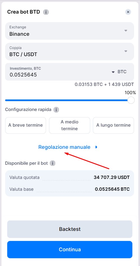 Per personalizzare le impostazioni avanzate del tuo bot, fai clic sul pulsante [Regolazione manuale].