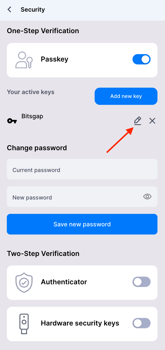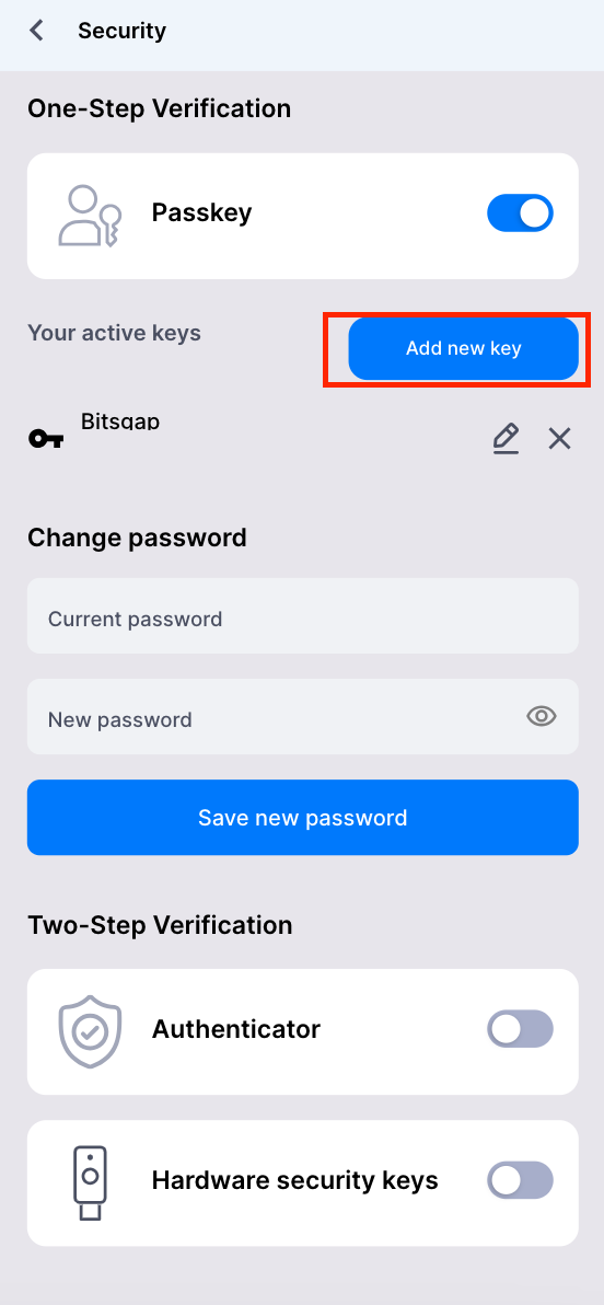 Abilitare l'autenticazione con passkey per il tuo account Bitsgap