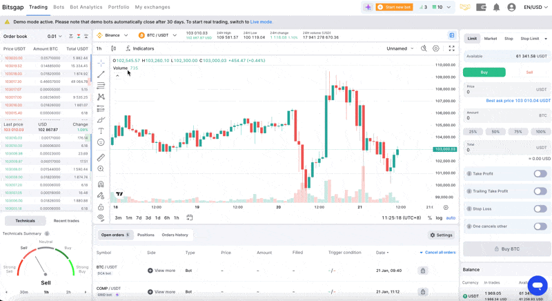 Prova i nostri Bot: Avvia oggi il tuo primo Bot: Sperimenta il trading automatizzato configurando il tuo primo bot su Bitsgap e sblocca nuove possibilità.