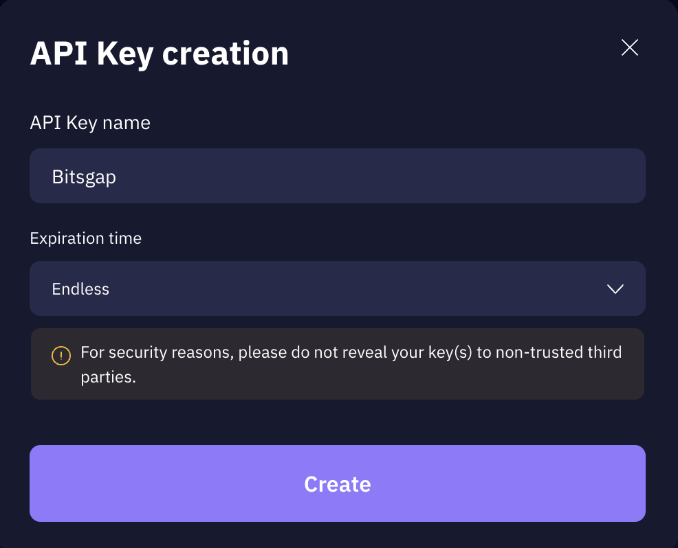 Dopo aver creato la chiave API e copiato la chiave del wallet, collega il tuo account Evedex a Bitsgap.