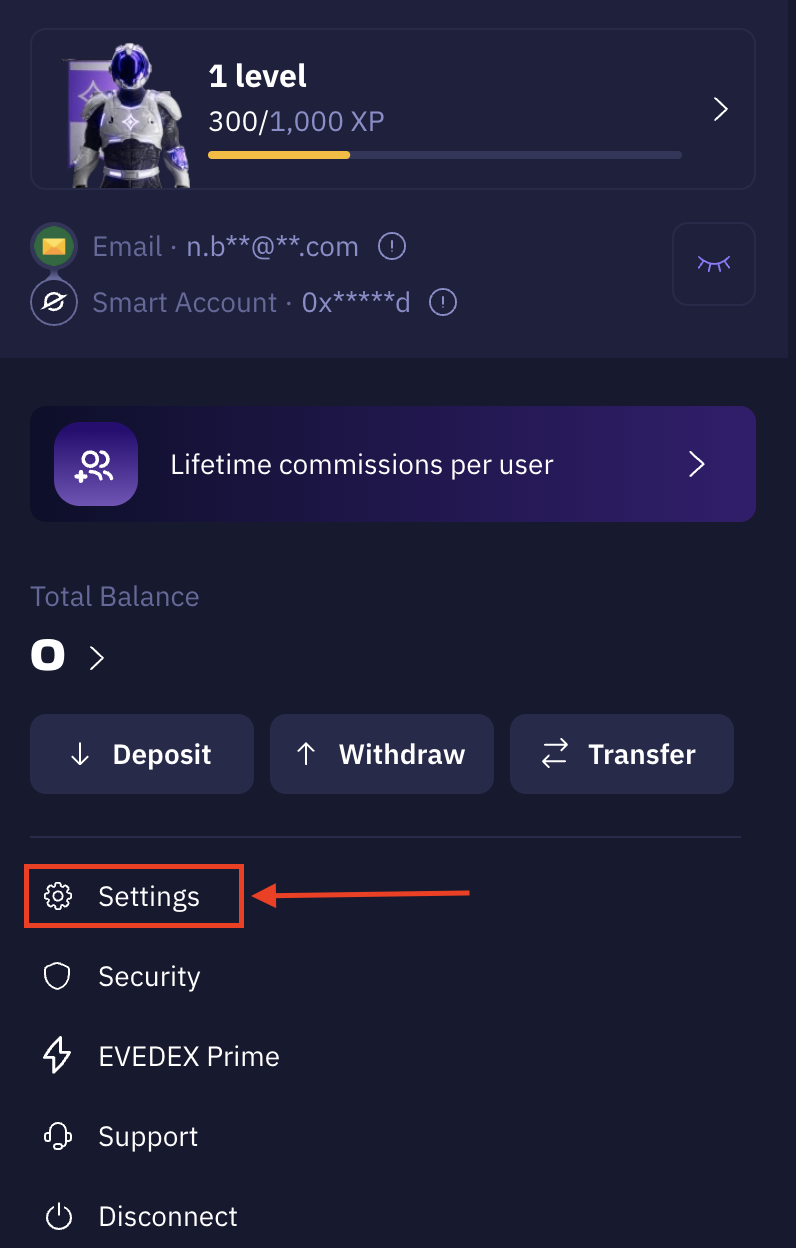 Nota: per completare correttamente la connessione devi avere fondi disponibili sul tuo account Evedex.