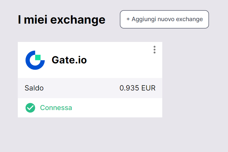 Se tutto è stato eseguito correttamente, vedrai Gate aggiunto all'elenco dei tuoi exchange collegati con lo stato Collegato e il saldo di trading disponibile sul tuo conto.