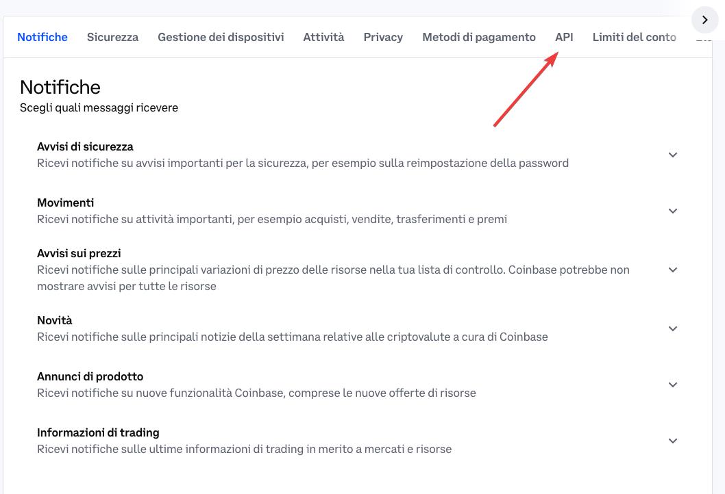 Tieni presente che se sei un nuovo utente di Coinbase Advanced Trade, dovrai attendere 48 ore prima di attivare la tua chiave API.
