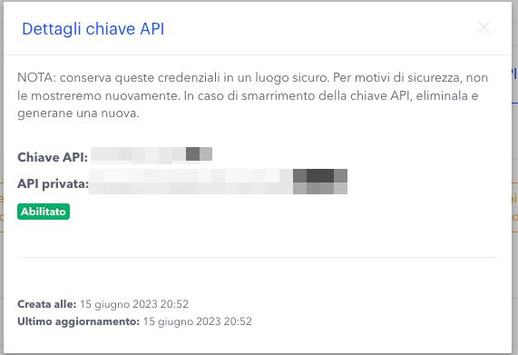 Per creare una nuova chiave API, clicca sul pulsante [Nuova chiave API] nella scheda API.