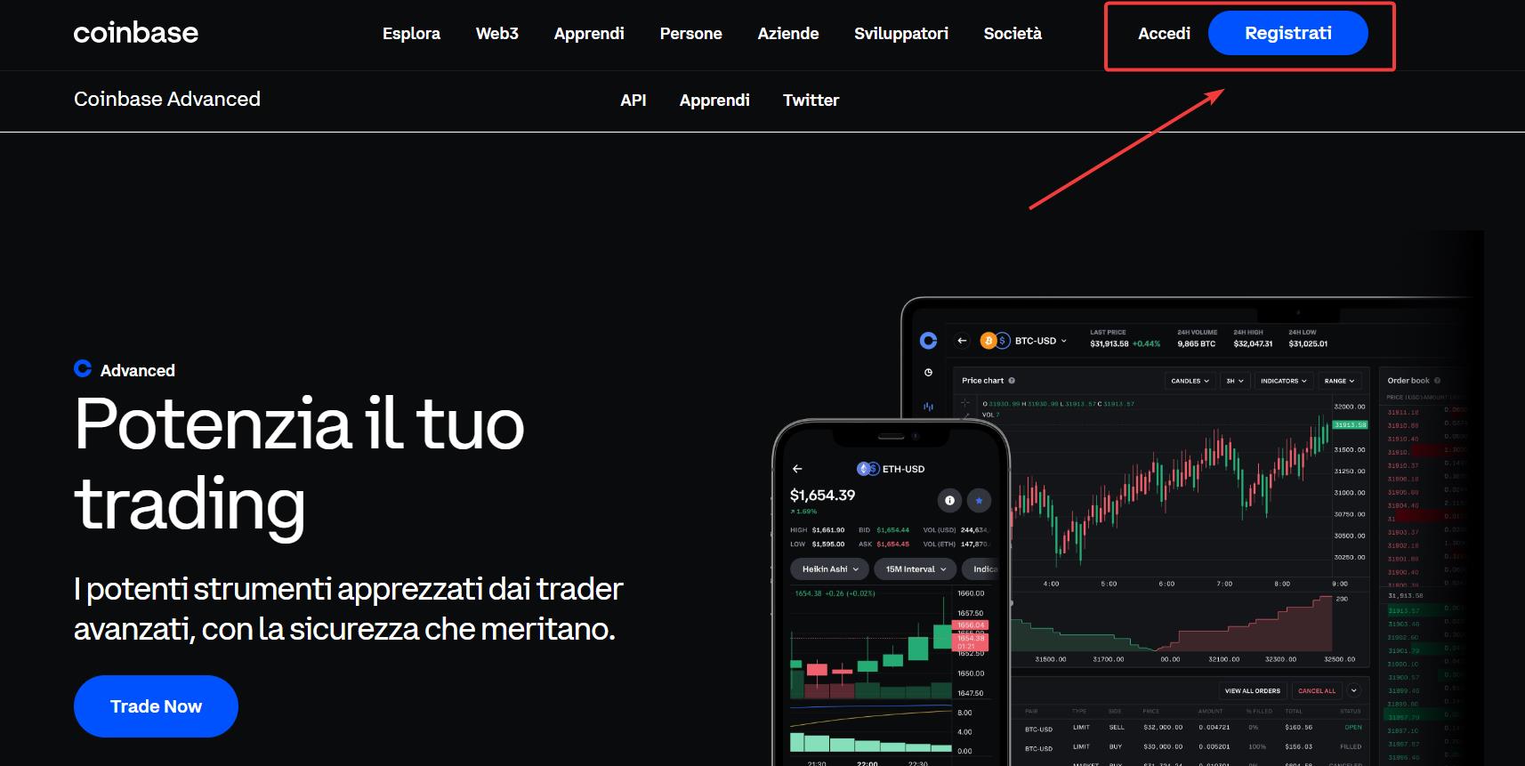 Accedi al tuo account Coinbase Advanced Trade o registrati se sei un nuovo utente.