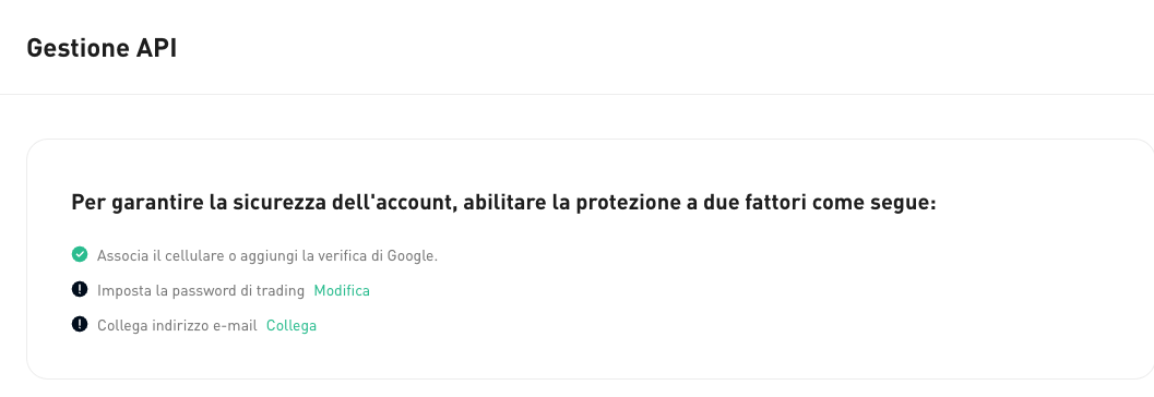 - Opzionale: Trading sui futures on (necessario se si fa trading di futures su Bitsgap);
