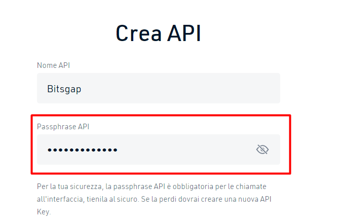 Tieni presente che in questa fase dovrai creare una password API. Questa password è individuale per ogni chiave API. Conservala in un luogo sicuro perché ci servirà tra un po'.