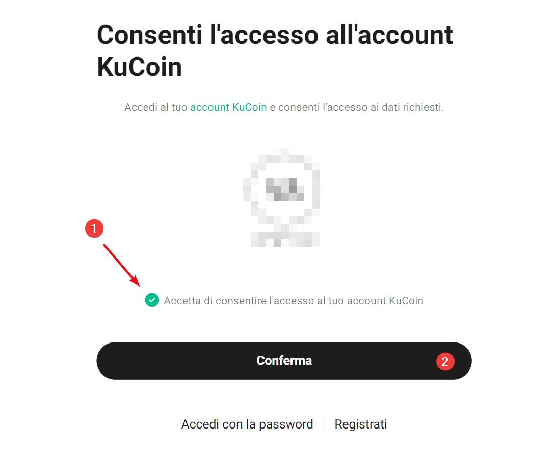 Verrai reindirizzato al sito di Kucoin, dove dovrai accettare di concedere l'accesso al tuo account Kucoin.