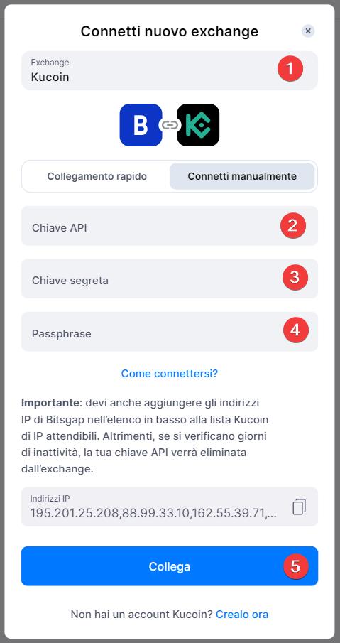 In questo articolo vedremo come creare, configurare e collegare la tua chiave API Kucoin alla piattaforma Bitsgap.