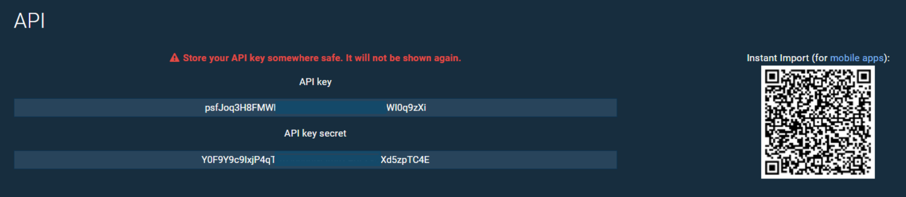 7. Copia la chiave API e la chiave segreta