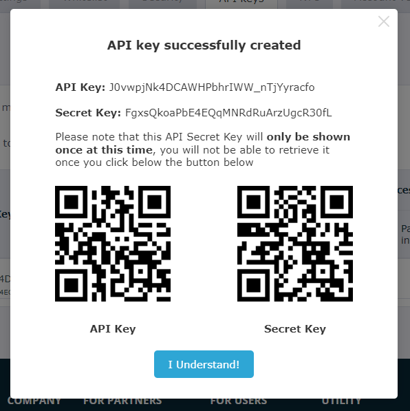 Ora la tua chiave di trading HitBTC è stata creata con successo ed è pronta per essere collegata alla nostra piattaforma! Copia la tua chiave API e la chiave segreta in un luogo sicuro prima di aggiungerle a Bitsgap.