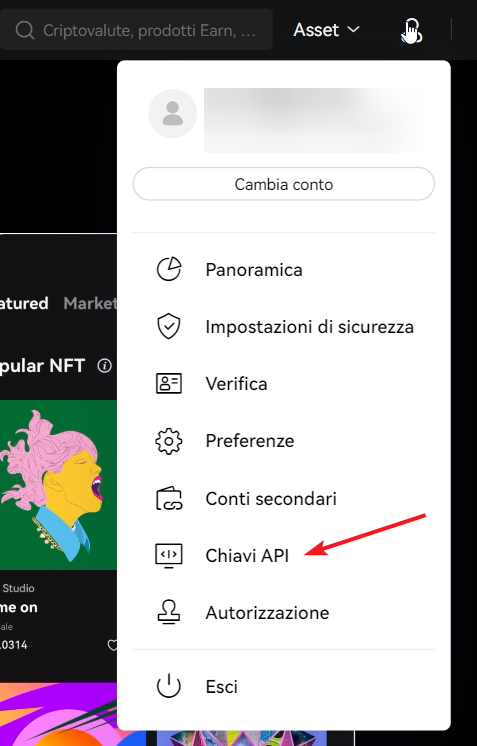 Passa alla pagina Chiavi API dalle impostazioni del tuo account (nell’angolo in alto a destra).