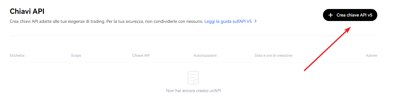 Tutte le operazioni di trading vengono create ed elaborate utilizzando una chiave API dell’exchange, che è unica per ogni utente. Una chiave API è un modo sicuro e affidabile per utilizzare una piattaforma, perché non dà accesso ai tuoi dati personali e impedisce qualsiasi manipolazione dei fondi (inclusi prelievi e depositi).