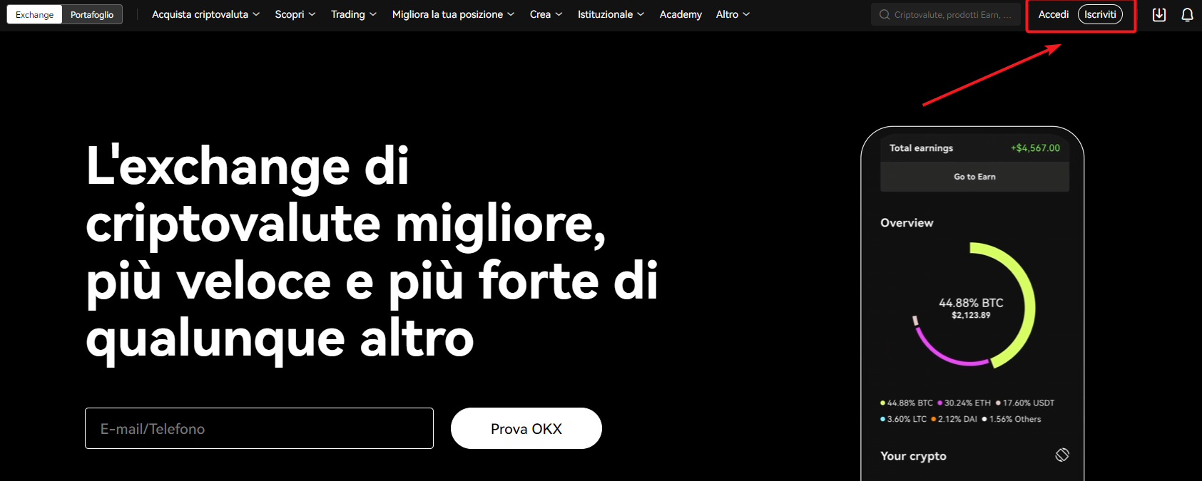 Per connettere il tuo account OKX a Bitsgap, inserisci le credenziali del tuo account OKX e clicca sul pulsante [Accedi].