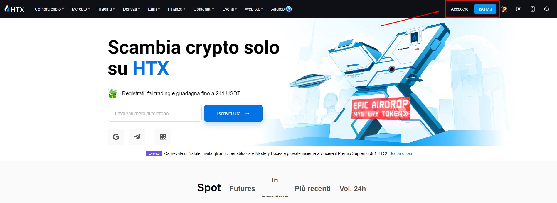 Accedi al tuo account HTX o creane uno nuovo.