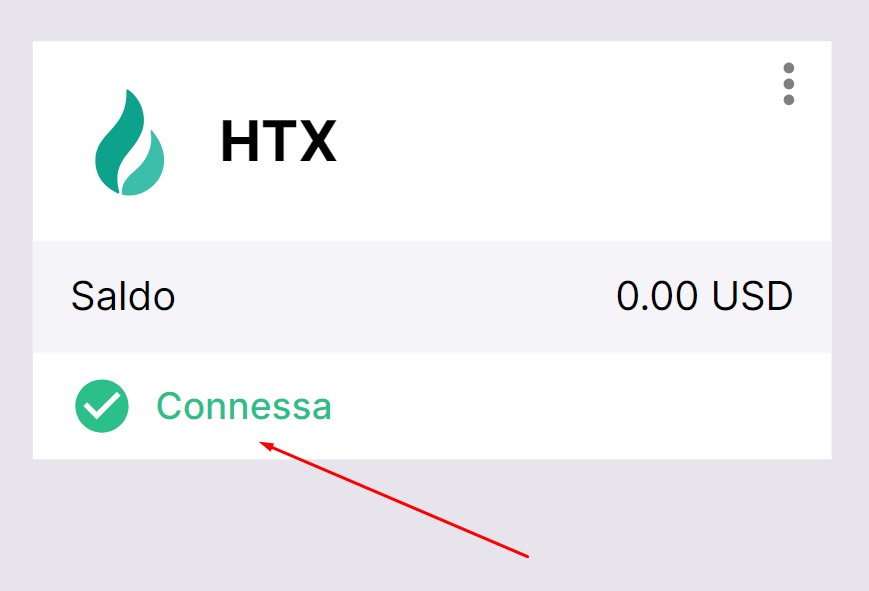 Se tutto è stato eseguito correttamente, vedrai HTX aggiunto all'elenco dei tuoi exchange con lo stato Connessa e il saldo di trading disponibile sul tuo conto.