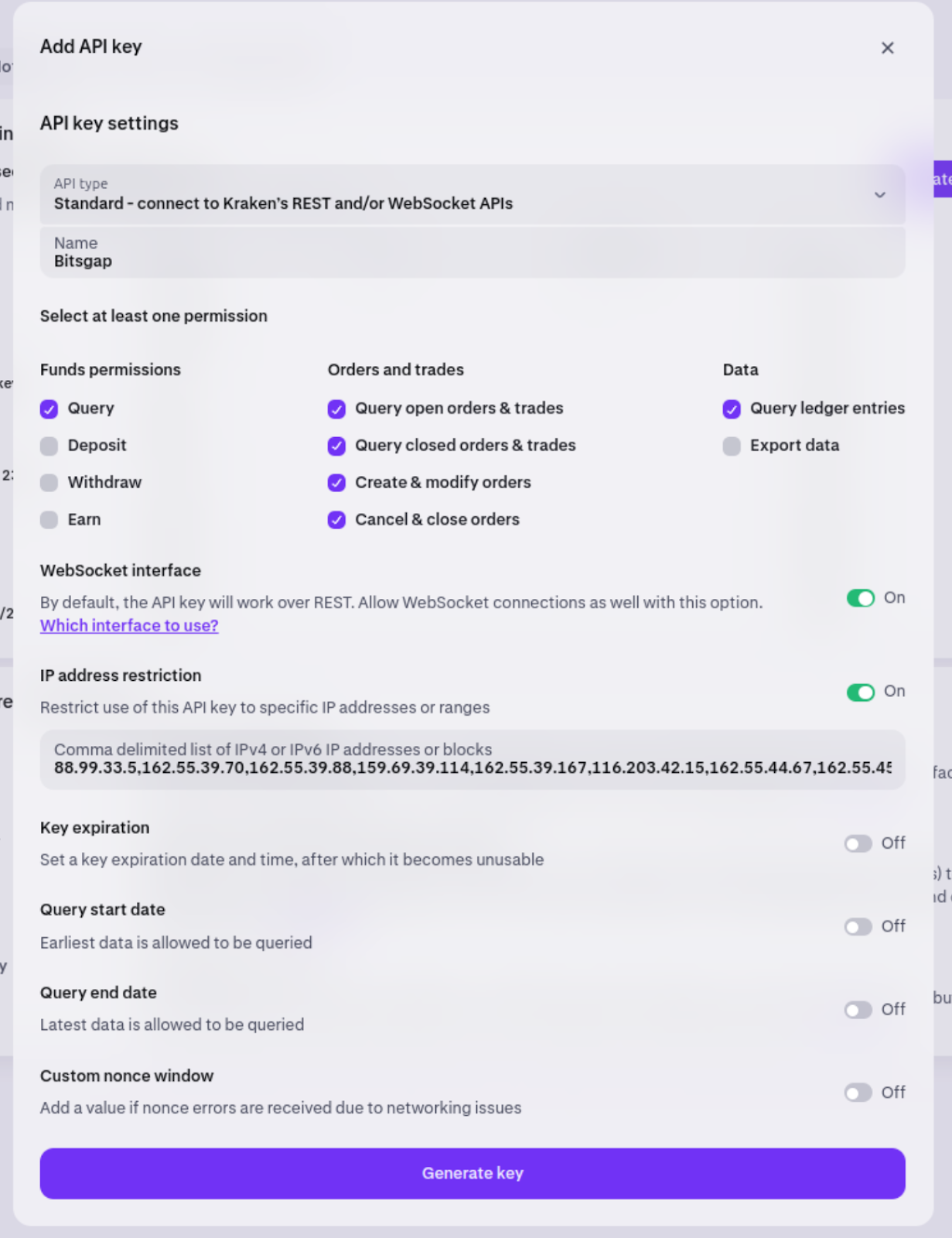 Questa guida ti accompagnerà nella creazione, configurazione e connessione della tua chiave API di Kraken Pro a Bitsgap.