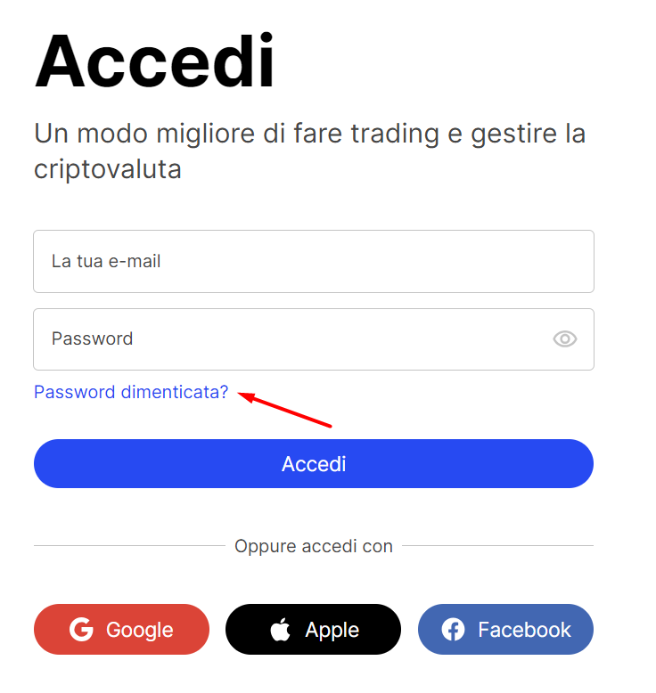 Il primo passo è reimpostare la tua password cliccando sul link Hai dimenticato la password?