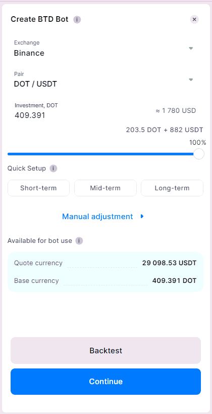 In de sectie Handmatige aanpassing tijdens het opzetten van de bot: