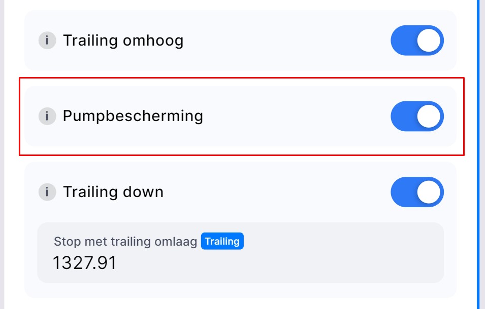 Pumpbescherming voorkomt dat de bot koopt tijdens abrupte prijsstijgingen.