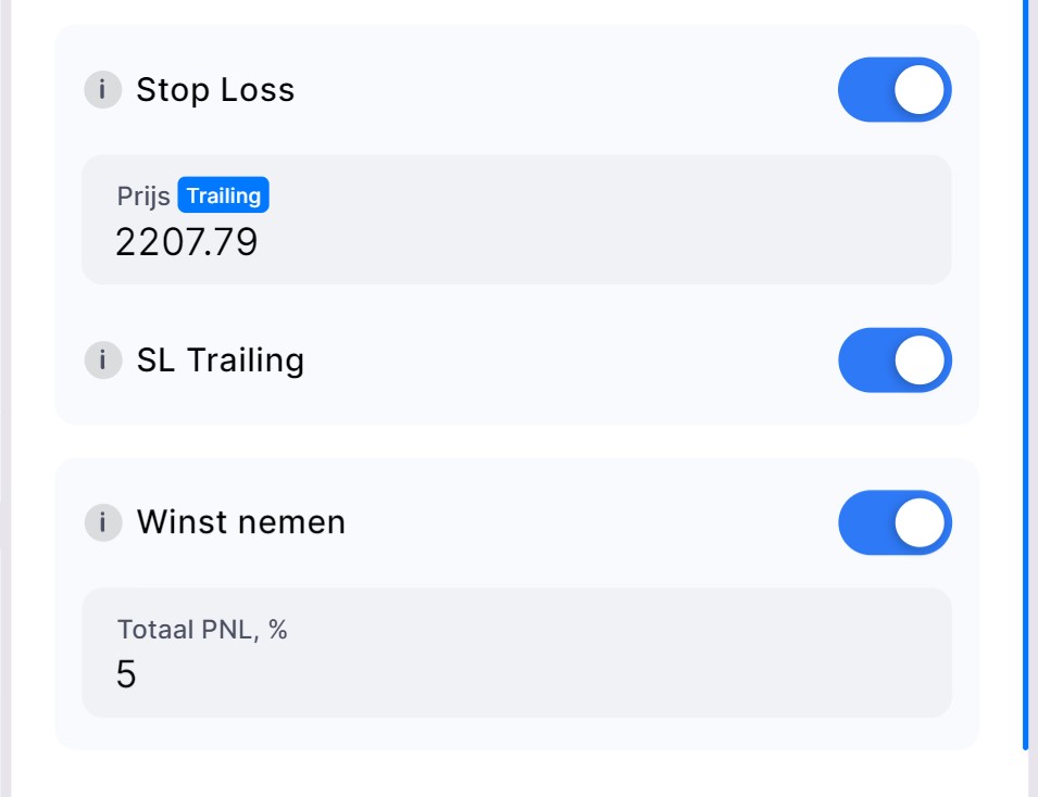 - Configureren van Take Profit en Stop Loss