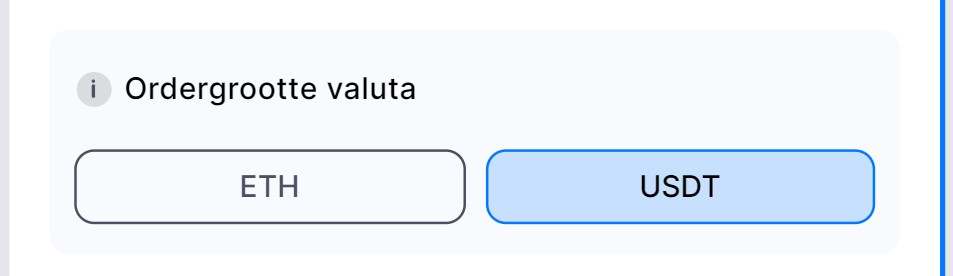 Je kunt kiezen om de ordergrootte in te stellen op basis van de quotevaluta (bijv. USDT) of basisvaluta (bijv. BTC).