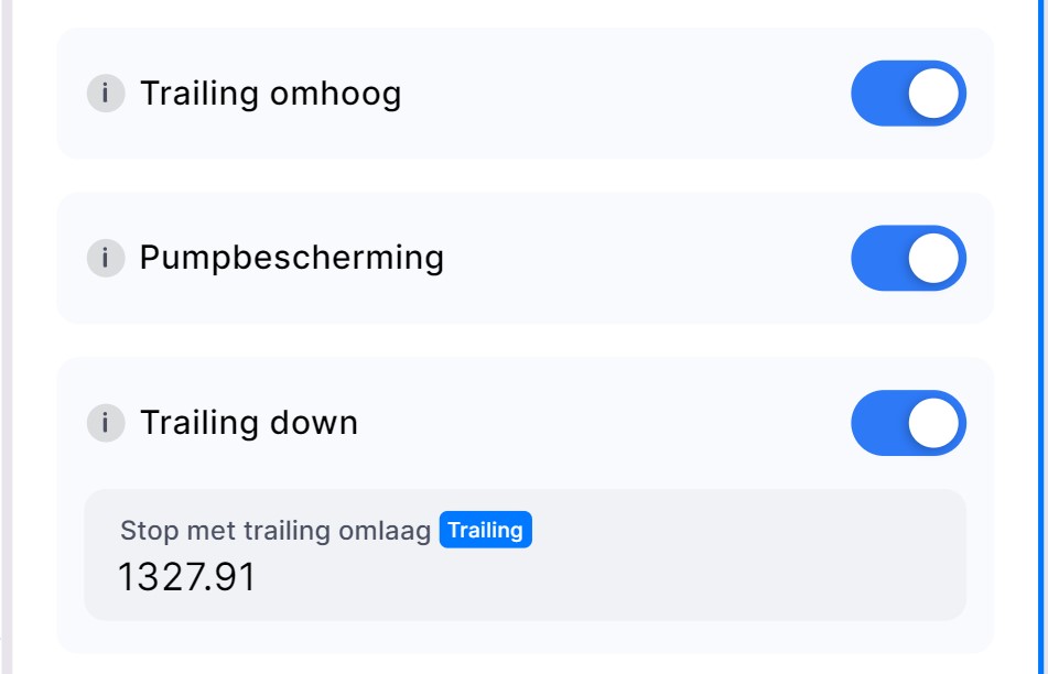 - Standaard ingeschakeld wanneer Trailing Up of Down is geactiveerd.