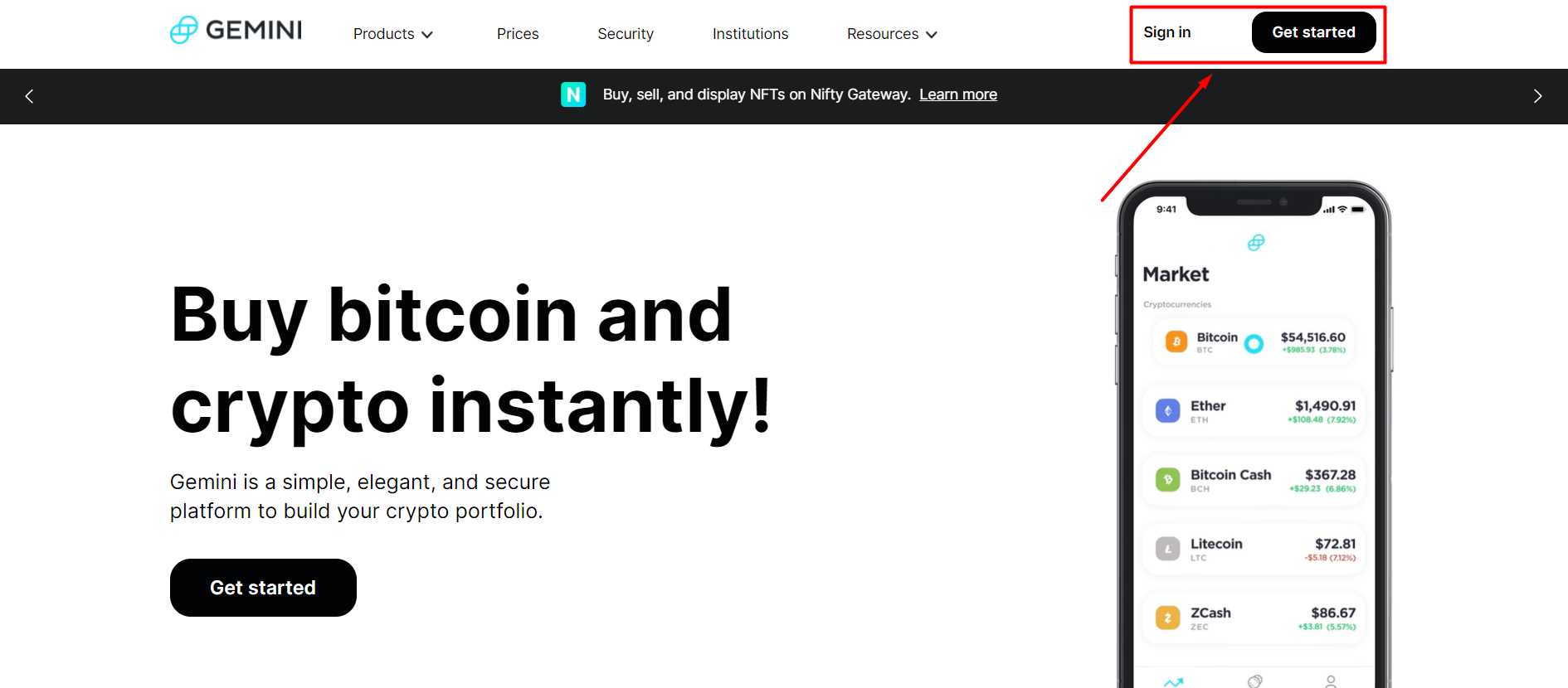 Log in op je Gemini account of maak een nieuw account aan.