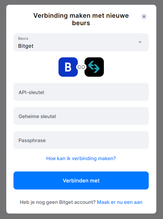 Alle handelstransacties worden gecreëerd en verwerkt met behulp van een exchange API key die uniek is voor elke gebruiker. Een API key is een veilige en betrouwbare manier om een platform te gebruiken, aangezien het platform zo geen toegang geeft tot je persoonlijke gegevens en er geen sprake is van fondsenbeheer (opnames & stortingen).