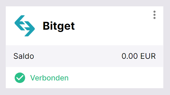 Als alles correct is uitgevoerd, zie je Bitget toegevoegd aan de lijst van je verbonden beurzen met de status "Verbonden" en het handelssaldo beschikbaar op je account.