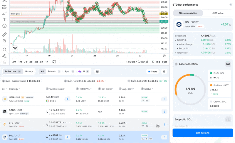 - Quando o PNL Total atinge +15% em BTC, o bot: