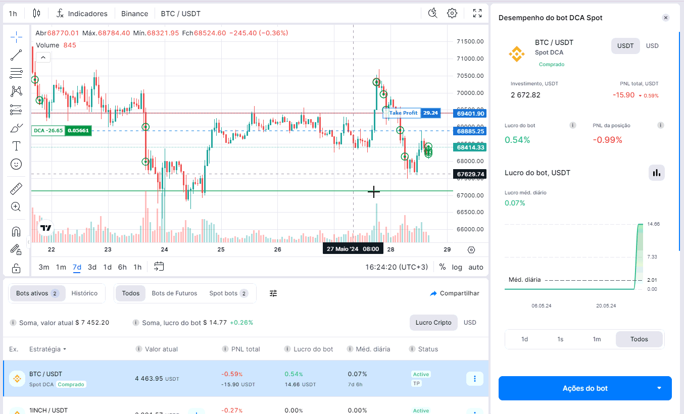 Nota Importante: Cada ciclo do bot DCA é independente, o que significa que o averaging manual se aplica apenas às posições assumidas durante o ciclo atual. Um novo ciclo começa com o investimento inicial, então os ciclos anteriores não afetam os novos.