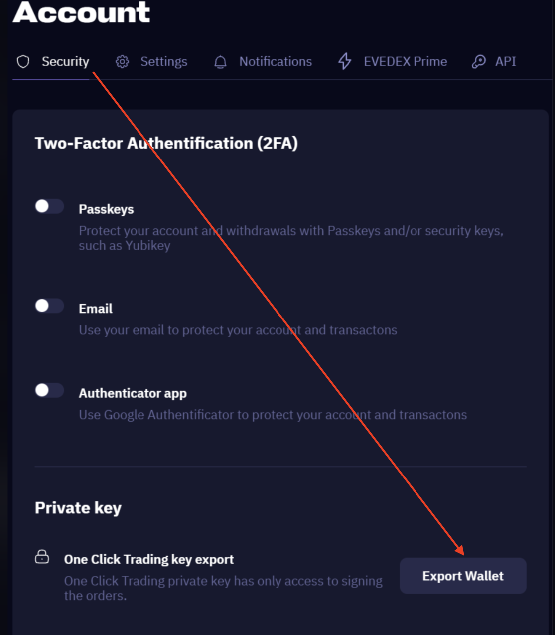 Vá para https://exchange.evedex.com/en-US/ e faça login.