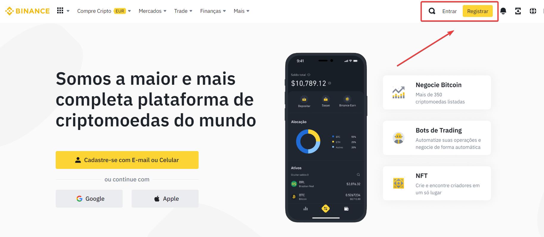 1. Faça login na Binance