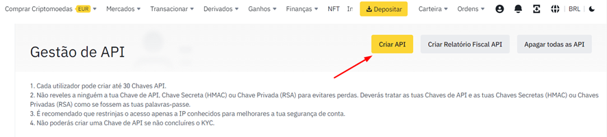 Como criar e configurar a chave API da Binance