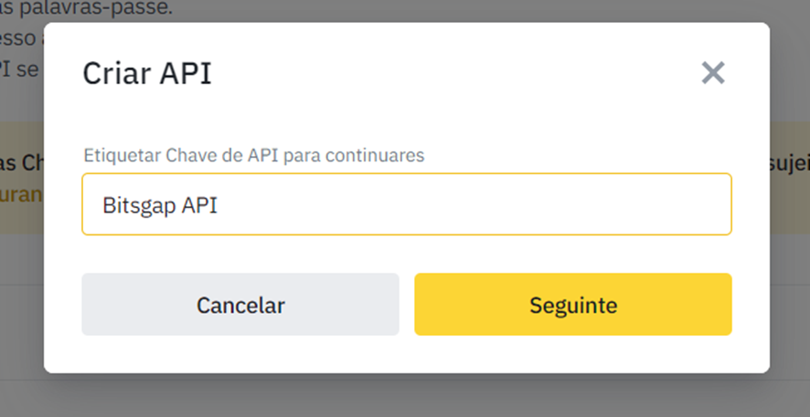 Dê à sua chave API qualquer nome (você quem escolhe), para que possa entender facilmente que essa chave está conectada à sua conta Bitsgap.