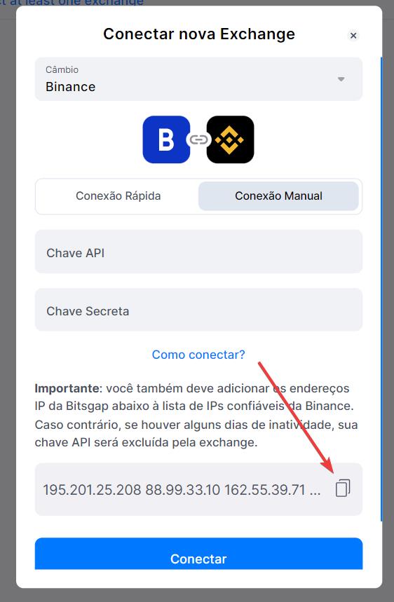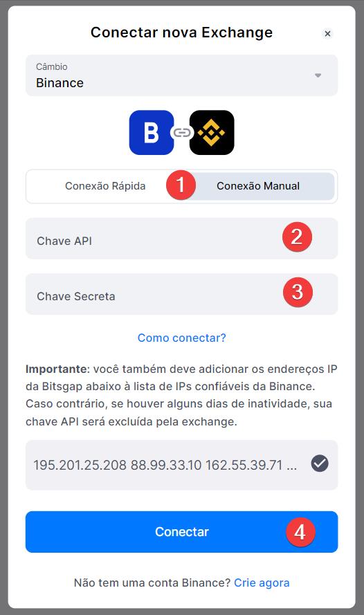 Conexão manual das chaves API da Binance